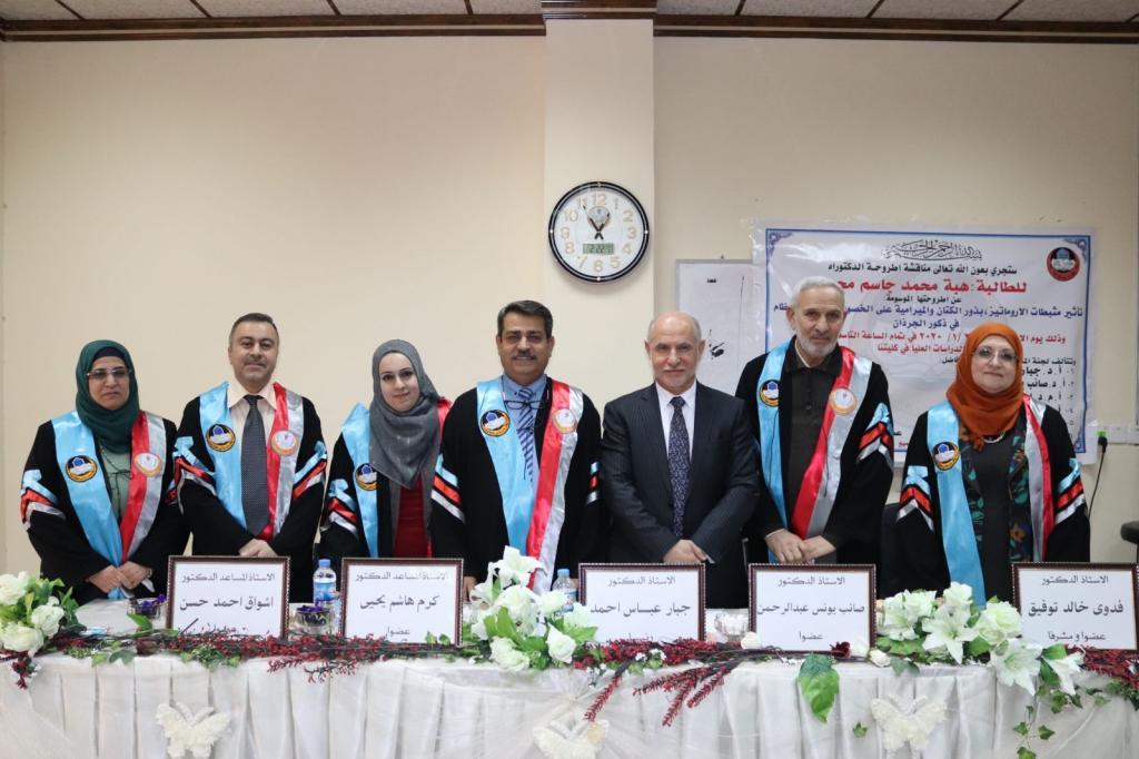Congratulations to Dr Heba Mohammed Jassem, Department of Physiology, Biochemistry and Pharmacology, who successfully defended her thesis during her PhD viva held on the Wednesday 22ndJanuary, 2020 entitled ‘Effect of Aromatase Inhibitors, Flaxseed and Sage on Fertility and Bone Physiology in Male Rats.’Heba’s supervisor was Professor Fadwa Khalid Tawfeeq. Her examiners were Professor. Jabbar Al-Saaidi, College of Veterinary Medicine, University of Al-Qadisiyah and Professor. SaebYounis Abdul-Rahman, College of Agriculture, University of Mosul and Assist. Professor. Karam Al-Mallah, College of Veterinary Medicine, University of Mosul and Assist. Professor. Ashwaq Ahmed Hassan,College of Veterinary Medicine, University of Mosul.