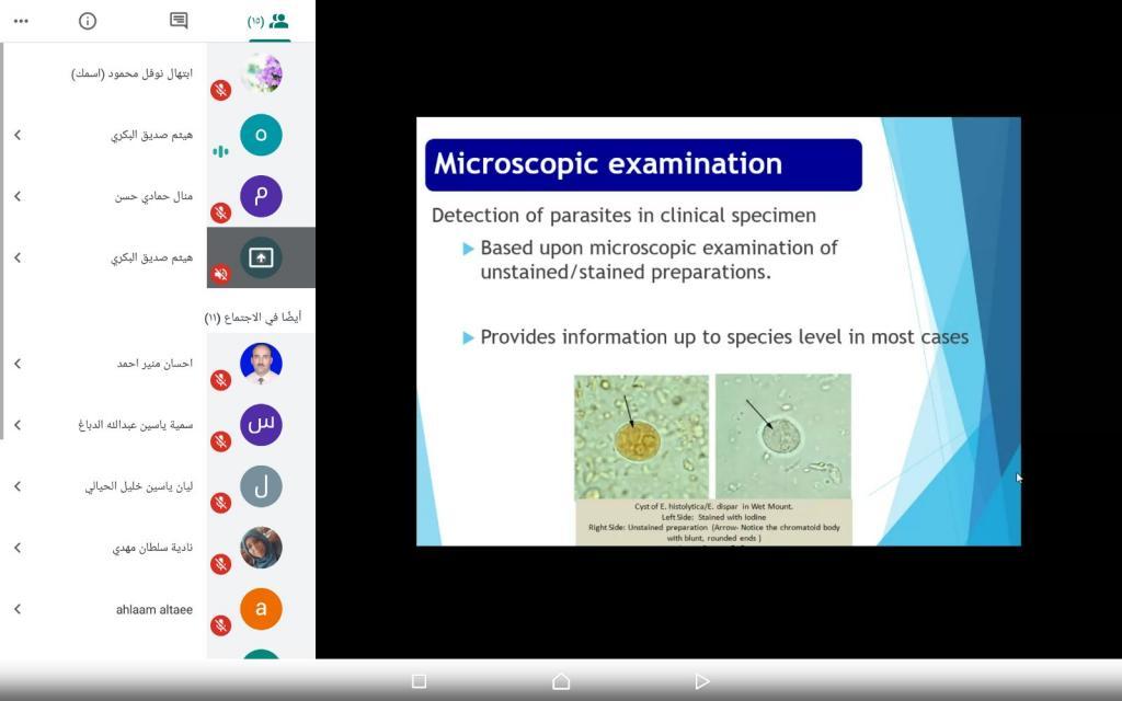 According to the seminar series for College of Veterinary Medicine that takes place over a period of a week or sousing Google Hangouts Meet.OnThursday 30thAugust 2020, Department of Microbiology, delivered seminaron the topic “Cultivation of Parasites”presented by Dr. Haitham Sedeeq Albakri.The seminar was focussed on the parasite cultivation, which requires expertise and knowledge of all kinds of microbiological cultures. It is sometimes employed for accurate identification of the parasite species. It is more often employed for obtaining large yields of the parasite as a source of antigen, animal inoculation, drug sensitivity testing, experimental or physiological studies, and teaching purposes.This seminar was attended by head of department and a number of college staff and postgraduate students.