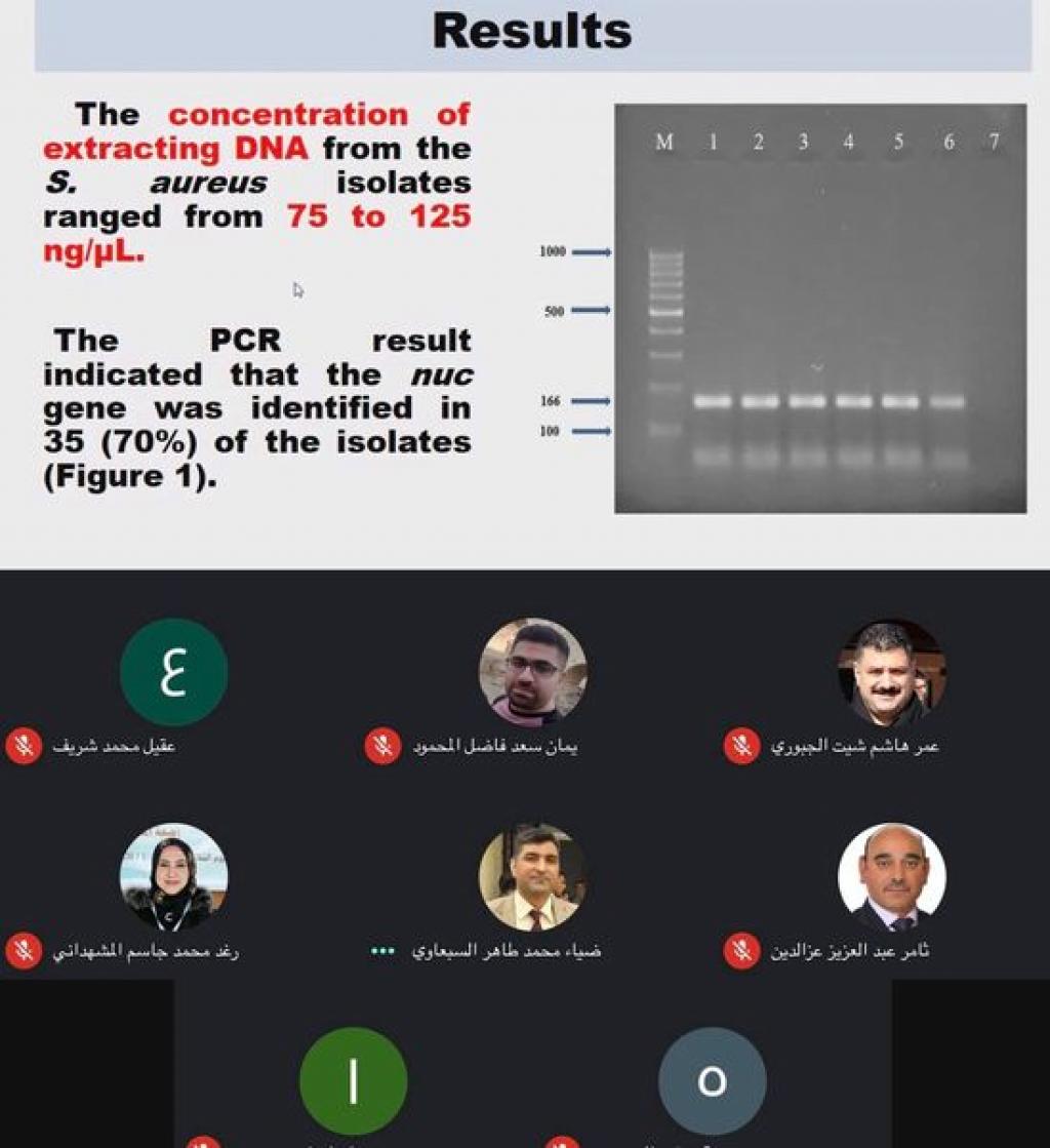 According to the seminar series for College of Veterinary Medicine that takes place over a period of a week or sousing Google Hangouts Meet.OnThursday 22ndSeptember 2020, Department of Veterinary Public Health, delivered seminaron the topic “Blended learning in scientific laboratories” presented by the head of department Dr. Muntaha Gazi Hasan. Furthermore, Onthe same day, Dr. Dhyaa Mohamad Taher Jwherdelivered seminar on the topic “Direct detection of staphylococcus aureus in camel’s milk in Nineveh governorate by using the PCR technique”.The first seminar was focussed on the the application of blended education and its adoption mechanism in covering the curricular vocabulary for practical lessons and how to design the practical curriculum. The second seminar was focussed on the detection of the most important food poisoning bacteria in milk, which are staphylococci in camel milk, and the adoption of the PCR technique.This seminar was attended by head of department and a number of college staff and postgraduate students.