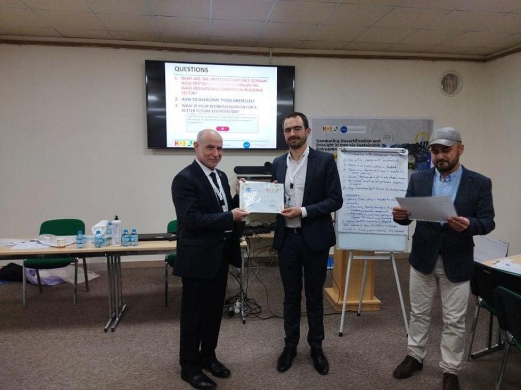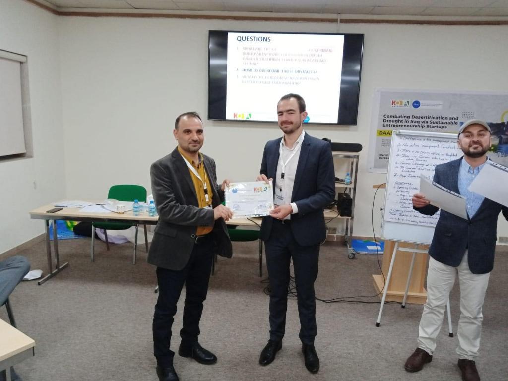 On Monday, 28thMarch 2022, The Dean of the College of Veterinary Medicine, Prof. Dr. Dhafer Muhammad Aziz and Dr. Amer Hussein Taha participated in a meeting held by the German Academic Exchange Service (DAAD), which was held at theEuropeanTechnology and TrainingCenterinErbil. A number of Iraqi academics from different Iraqi governorates who had previously received fellowships from DAAD participated in this meeting.During this meeting, the activities of German Academic Exchange Servicein Iraq were reviewed, and a number of topics were discussed especially the obstacles facing students wishing to complete their studies in Germany.It is worth noting that the Dean of the College of Veterinary Medicine holds a doctorate from Germany and that was through the DAAD Foundation.