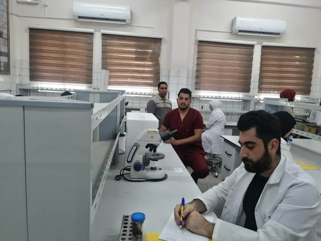 On Sunday, 14thAugust 2022, Objective Structured Practical Veterinary examination was conducted by College of Veterinary Medicine to assess summer training student’s performance on clinical skills at the Veterinary Teaching Hospital. The exam consisted of multiple mini-stations which the students rotate round in sequence, completing a variety of tasks for the specialties of surgery, obstetrics, internal medicine, and clinical pathology, poultry and fish diseases.The Dean of the College of Veterinary Medicine, Prof. Dr. Dhafer Muhammad Aziz and Dean Assistant for Scientific Affairs Professor Dr. Raad Abdulghani Basheer toured the halls and followed the progress ofexamination process in terms of proving the appropriate atmosphere for the students.We wished all the students’ success and approval in the performance of the exam.
