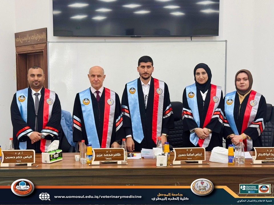 The College of Veterinary Medicine, University of Mosul, held the defense of a master’s thesis titled “Efficiency of Prostaglandin E₂ and Interleukin-1α for Early Pregnancy Diagnosis in Local Iraqi Ewes” by Omar Khalid Hamdoun (Veterinary Obstetrics) on August 18, 2025. The study highlighted the potential of PGE₂ and IL-1α, measured by ELISA alongside ultrasonography, as biomarkers for early pregnancy detection.