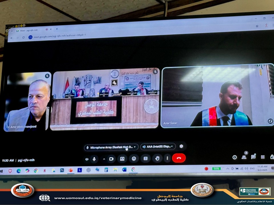 The College of Veterinary Medicine at the University of Mosul discussed the master’s thesis titled: