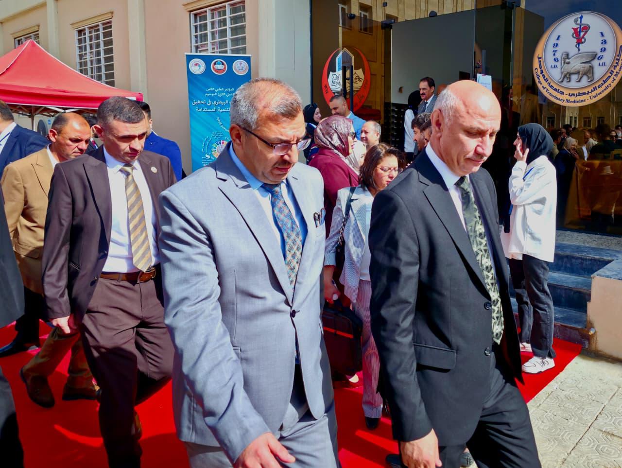 The conference activities were attended by Professor Dr. Abdulrahim Ibrahim Jassim, Assistant President of the University for Scientific Affairs, and Dr. Alaa Hussein Al-Hasnawi, President of the Iraqi Veterinary Syndicate, along with several deans of colleges at the University of Mosul and other veterinary colleges across Iraq. Also present were researchers and academics from Iraqi and Arab universities, who emphasized the importance of strengthening scientific and research cooperation in this vital field to advance the Sustainable Development Goals both locally and globally.