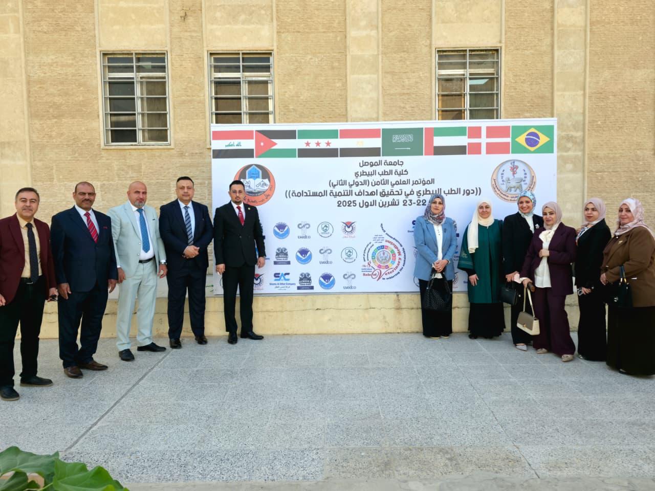 Under the patronage of His Excellency the Minister of Higher Education and Scientific Research, Dr. Naeem Al-Aboodi, and under the supervision and presence of Professor Dr. Waheed Mahmoud Al-Ibrahimi, President of the University of Mosul, the College of Veterinary Medicine—​in cooperation with the University Presidency / Department of Studies and Planning / Sustainable Development Unit—​organized this morning, Wednesday, October 22, 2025, the Eighth Scientific (Second International) Conference, which will continue for two days under the theme: