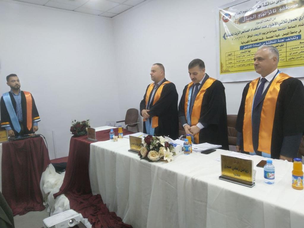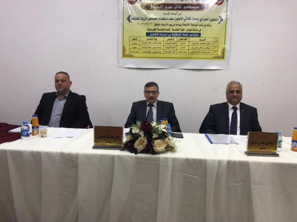 نوقش بحث دبلوم عالٍ في قسم الهندسة الكهربائية بجامعة الموصل بعنوان “التحليل الحراري لمحول ثلاثي الأطوار عند استخدام خصائص الزيت المختلفة” للطالب مصطفى ثائر نوري الجمّال في تمام الساعة التاسعة من يوم الاربعاء الموافق 16/3/2022.