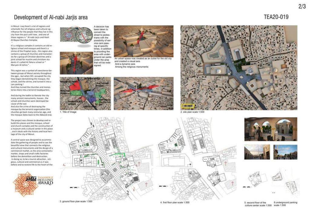حصل مشروع التخرج للطالبة سرر ناصر في قسم هندسة العمارة – كلية الهندسة – جامعة الموصل وباشراف الاستاذ عامر العزاوي على المرتبة الشرفية في جائزة التميز لمشاريع التخرج فئة المشاريع المحلية لثمانية عشر جامعة مشاركة عن مشروع تطوير منطقة النبي جرجيس ضمن مدينة الموصل القديمة وقد اشاد المحكمون بالجهد المبذول من الطالبة والمشروف وهي رسالة ايجابية لما ستكون عليه المدينة القديمة .وهذه الجائزة هي ضمن مجموعة جوائز متخصصة بالعمارة وبرعاية جامعة كوفنتري وجامعات ومؤسسات اكاديمية اخرى. داب قسم هندسة العمارة على المشاركة الفعالة في هذه الجائزة على مدى تسعة دورات منذ 2012 وحصل على العديد من الجوائز الخاصة بمشاريع تخرج الطلبة وايضا على مستوى الاقسام من خلال لجنة دعم الطلبة وممثل جائزة التميز في جامعة الموصل.