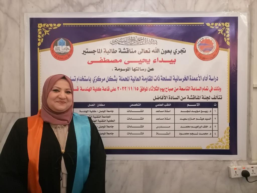 تمت مناقشة رسالة ماجستير في قسم الهندسة المدنية / جامعة الموصل بتخصص الإنشاءات، بعنوان “دراسة اداء الأعمدة الخرسانية المسلحة ذات المقاومة العالية المحملة بشكل غير مركزي باستخدام تسليح غير متناظر” للطالبة بيداء يحيى مصطفى العبيدي وباشراف الاستاذ الدكتور محمد نجم محمود ال زبير في يوم الثلاثاء الموافق 2022/11/15 وبحضور السيد عميد كلية الهندسة الاستاذ الدكتور عبد الرحيم ابراهيم جاسم. والسيد معاون العميد للشؤون العلمية الدكتور ايمن طالب.تم دراسة تأثير استعمال حديد التسليح غير المتناظر في الأعمدة المستطيلة المحملة لا مركزيا عند استعمال خرسانة عالية المقاومة والخروج بتوصيات تتعلق بالحالات التي يمكن أن تساعد في الاستفادة من مقاومة الخرسانة العالية باستعمال حديد تسليح غير متناظر.وينقسم البحث الحالي إلى شقين: دراسة عملية ودراسة نظرية، حيث تضمنت الدراسة العملية فحص ثمانية أعمدة خرسانية مسلحة لدراسة تأثير مقاومة الخرسانة وتأثير توزيع حديد التسليح وتأثير الاختلاف في لامركزية الحمل.أما الدراسة النظرية فتضمنت إجراء التحليل غير الخطي لثمانية أعمدة تحاكي الأعمدة في البرنامج العملي بواسطة برنامج (ANSYS V15) ومقارنة النتائج مع النتائج العملية التي تم الحصول عليها. كما تم إجراء حسابات يدوية بالاعتماد على المدونة الأمريكية (ACI 318-19 Code) ومقارنة نتائج مقاومة الأعمدة مع نتائج الدراستين العملية والنظرية.تألفت لجنة المناقشة من الاستاذ مساعد الدكتور ربيع مؤيد نجم (رئيساً) والأستاذ مساعد السيد هيثم حازم سعيد (الجامعة التقنية الشمالية / الكلية التقنية الهندسية / الموصل / عضواً) والدكتور خلف ابراهيم محمد (عضواً) بالإضافة إلى الاستاذ الدكتور محمد نجم محمود (عضواً ومشرفاً). وتم بعدها قراءة قرار اللجنة والذي نص على قبول الرسالة مع منح الطالبة درجة الماجستير. مبارك للطالبة والقسم العلمي.