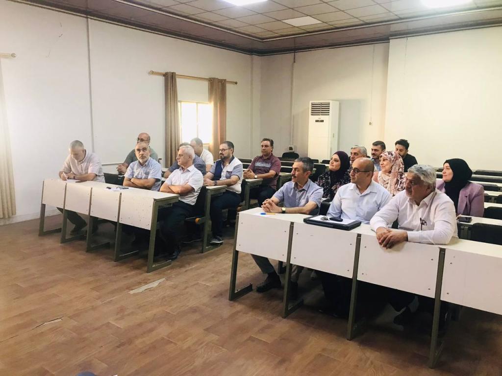 اجتمع رئيس قسم هندسة البيئة د.عبد الله اسماعيل بأعضاء الهيئة التدريسية في يوم الخميس الموافق 2022/9/29، وذلك استعداداً لاستقبال العام الدراسي الجديد 2022-2023. ونوقش في الاجتماع حالات طلبة المقررات ومتطلبات الكورس الخريفي القادم بالاضافة الى وضع خطط للقسم لتحقيق متطلبات نظام المجلس الامريكي لإعتماد التعليم الهندسي (ABET).