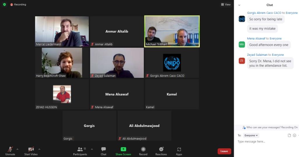 اجتماع الكتروني لمجموعة من تدريسيي قسم هندسة السدود والموارد المائية مع كادر من جامعة بوكو النمساوية وافراد من منظمة UNIDO