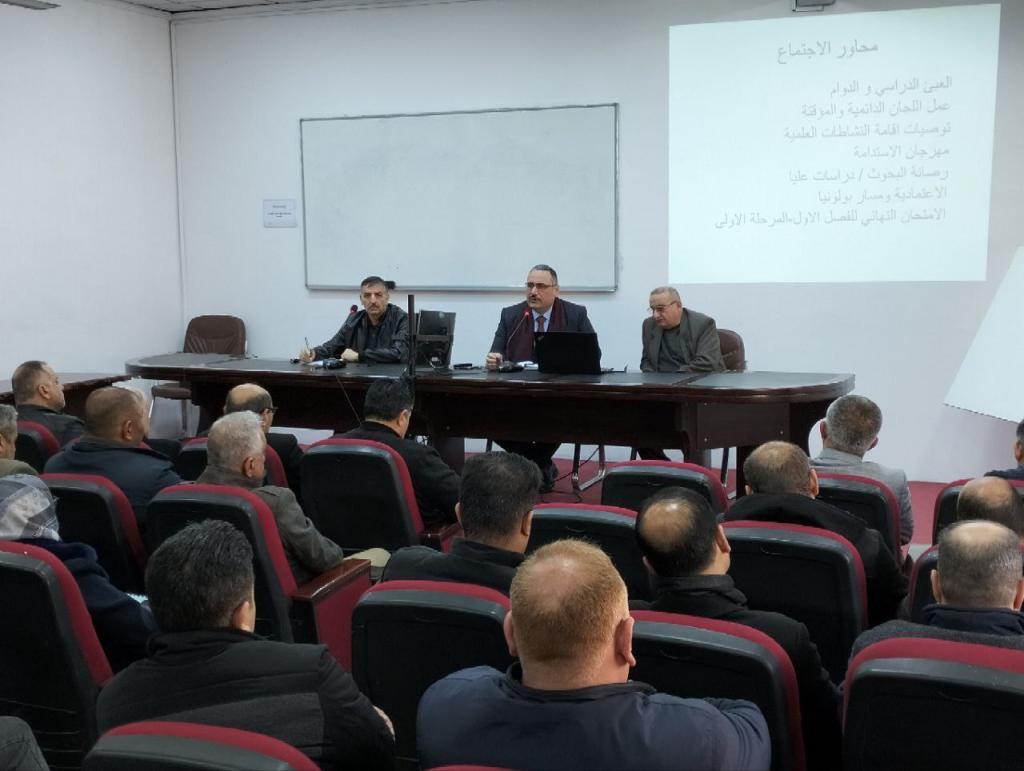 كذلك تضمن الأجتماع متابعة اداء جميع اللجان في القسم وايجاد حلول للمعوقات التي تصادفها في سير عملها.
