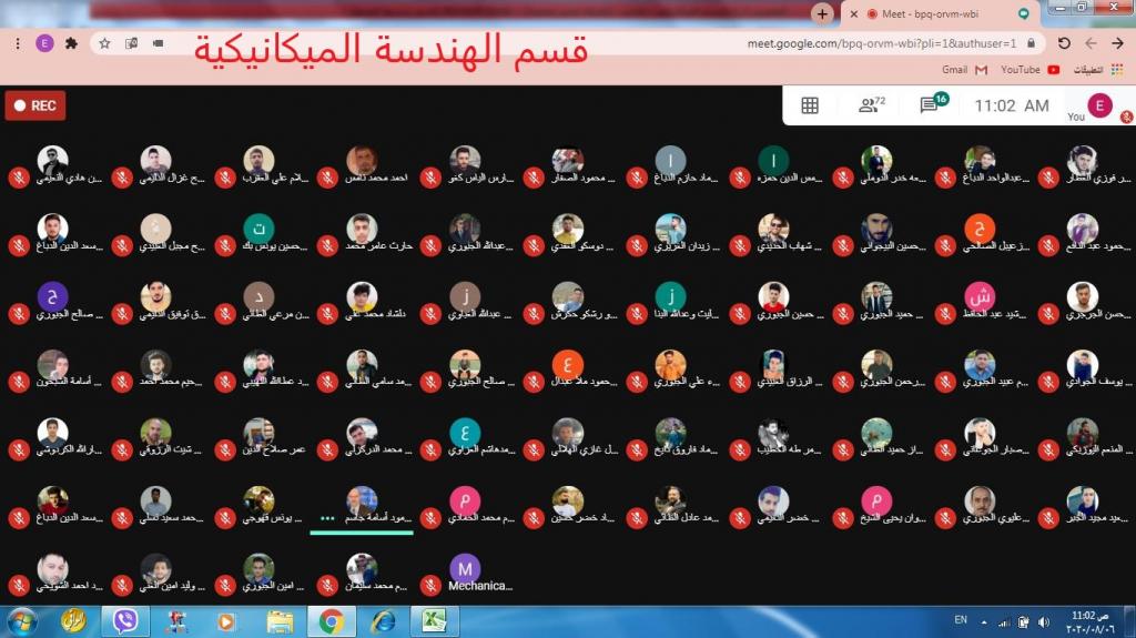 استأنفت كلية الهندسة في جامعة الموصل الامتحانات النهائية الإلكترونية للدراسات الأولية (الدور الأول) للعام الدراسي 2020/2019 وعبر منصات التواصل الالكتروني ” Google Meet ” , ” Google Classroom ” اليوم الخميس الموافق 6/8/2020 بعد انتهاء عطلة عيد الاضحى المبارك وبإشراف مباشر من قبل السيد عميد كلية الهندسة الأستاذ الدكتور بيار جعفر السيلفاني المحترم وبمتابعة من قبل اللجان الامتحانية للأقسام العلمية كافة واللجنة المركزية المُشكلة في عمادة كلية الهندسة لمراقبة سير الامتحانات.حيث تشرفت كلية الهندسة بزيارة اللجنة المركزية للامتحانات الإلكترونية للدراسات الأولية في جامعة الموصل للاطلاع على سير الامتحانات .تمنياتنا بالموفقية والنجاح لطلبتنا الأعزاء في أداء امتحاناتهم.