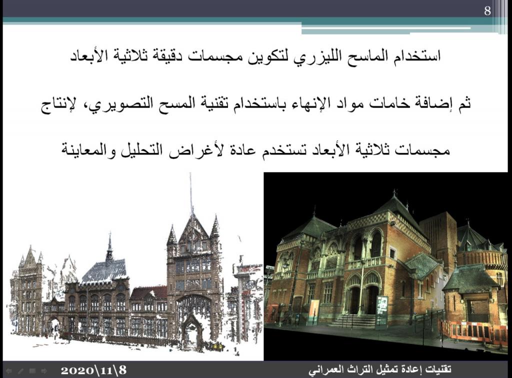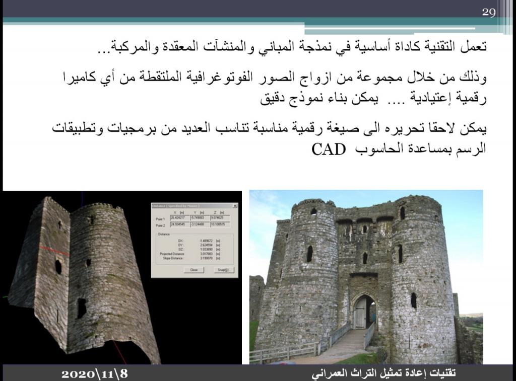 استغرقت الحلقة العلمية أكثر من ساعة تخللتها مجموعة من الأسئلة والاستفسارات المطروحة من قبل المشاركين حول تفاصيل استخدام أجهزة المسح والتوثيق الحديثة وأساليب التعامل مع البيانات المكتسبة وطرق معالجتها والاستفادة منها.