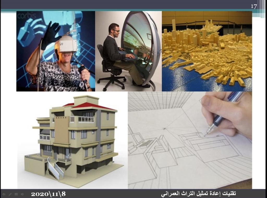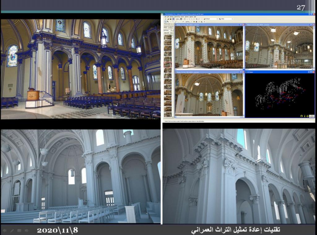 قدم الأستاذ خلال الاستضافة محاضرة تفاعلية لطلبة المرحلة الرابعة حول التقنيات والأساليب الحديثة في مسح وتوثيق وإعادة تمثيل البيئة المبنية المستخدمة حاليا في قطاع الإنشاء والبناء والحفاظ وسبل توظيفها في توثيق وإعادة تمثيل فضاءات المباني الداخلية المطلوب إعادة استخدامها وتكييفها لتصاميم جديدة.