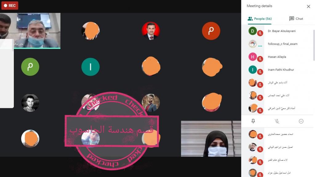 استمرت الامتحانات النهائية الألكترونية للدراسات الأولية (الدور الأول) لكلية الهندسة وعبر منصتي Google Meet و Google Classroom للتعليم الإلكتروني.حيث تشرفت كلية الهندسة بزيارة اللجنة الوزارية لمتابعة الامتحانات الالكترونية و اللجنة المركزية للامتحانات الألكترونية للدراسات الأولية في جامعة الموصل برئاسة السيد مساعد رئيس جامعة الموصل للشؤون العلمية الأستاذ الدكتور منير سالم طه المحترم للاطلاع على سير الامتحانات الالكترونية صباح يوم الاحد الموافق 19-7-2020 و بإشراف مباشر من السيد عميد كلية الهندسة الأستاذ الدكتور بيار جعفر السيلفاني المحترم وبمتابعة من قبل اللجان الامتحانية لأقسامها العلمية كافة واللجنة المركزية المُشكلة في عمادة كلية الهندسة لمراقبة سير الامتحانات.