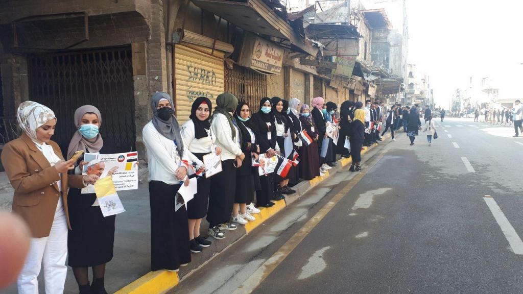 اسرة كلية الهندسة تلوح بمحبة للحبر الاعظم فرنسيس في زيارته التاريخية للموصل