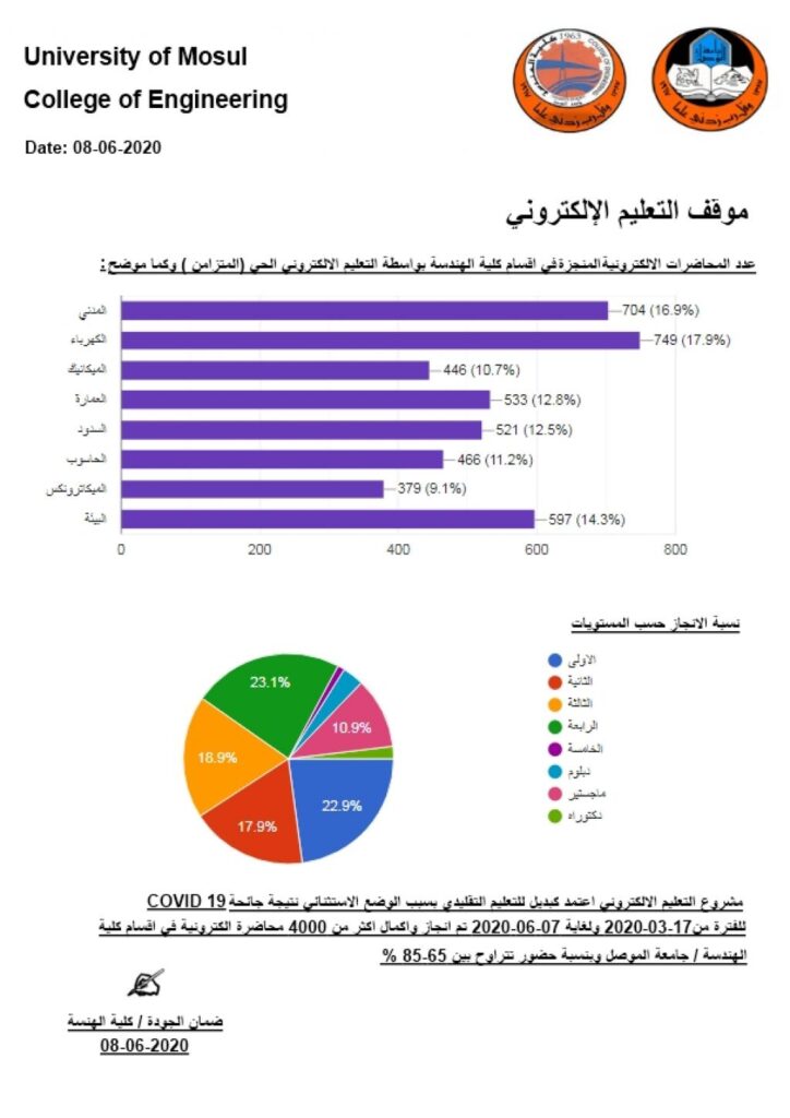 برعاية السيد رئيس جامعة الموصل أ.د. قصي كمال الدين الاحمدي المحترم وبدعم من السيد عميد كلية الهندسة أ. د. بيار جعفر السليفاني تقيم كلية الهندسة دورة تدريبية الكترونية بعنوان