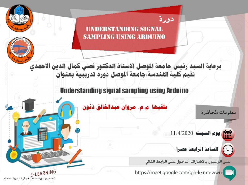 – دورة عن Understanding signal sampling using Arduino يلقيها م.م. مروان عبد الخالق ذنون في تمام الساعة 4:00 مساء.