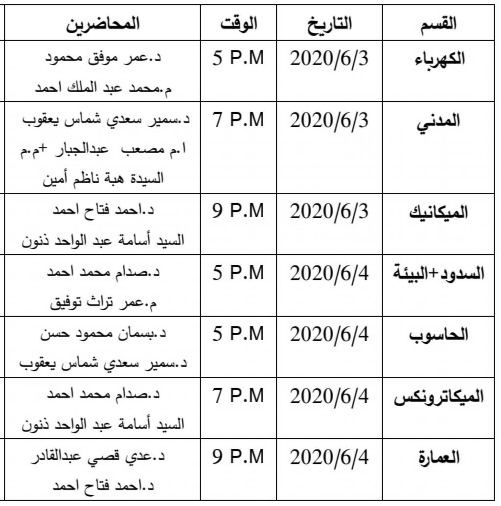 ضمن سلسلة الدورات التدريبية التي تقيمها كلية الهندسة لاداء الامتحان الالكتروني لطلبة الدراسات العليا والامتحان التكميلي وباشراف مباشر من الاستاذ الدكتور بيار جعفر السليفاني عميد كلية الهندسة المحترم، اقامت اللجنة المركزية للتدريب على الاختبارات الالكترونية -كلية الهندسة سلسلة من الدورات التدريبية لاداء الاختبارات الالكترونية لتدريسيي الكلية ضمن جدول زمني محدد ولكل اقسام كلية الهندسة في جامعة الموصل. حيث تم إقامة هذه الدورات يومي الأربعاء والخميس 3 و4/6/2020.