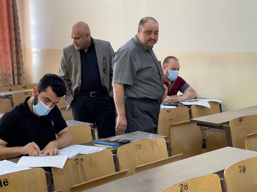 استهلت اليوم 8/5/2022 امتحانات طلبة الدراسات العليا للفصل الدراسي الثاني للعام 2021-2022. وتمت بمراقبة واشراف ادارات الاقسام العلمية وبزيارات من قبل المكلف بمهام العميد د. عمر موفق اليوسف وايضا معاون العميد للشؤون الادارية السيد عمر تراث. وتمت تهيئة شروط السلامة والانارة والتهوية الصحية كعادة الكلية في فترة الامتحانات. تمنياتنا لطلبتنا وزملائنا كل التوفيق والسداد في مشوارهم العلمي.