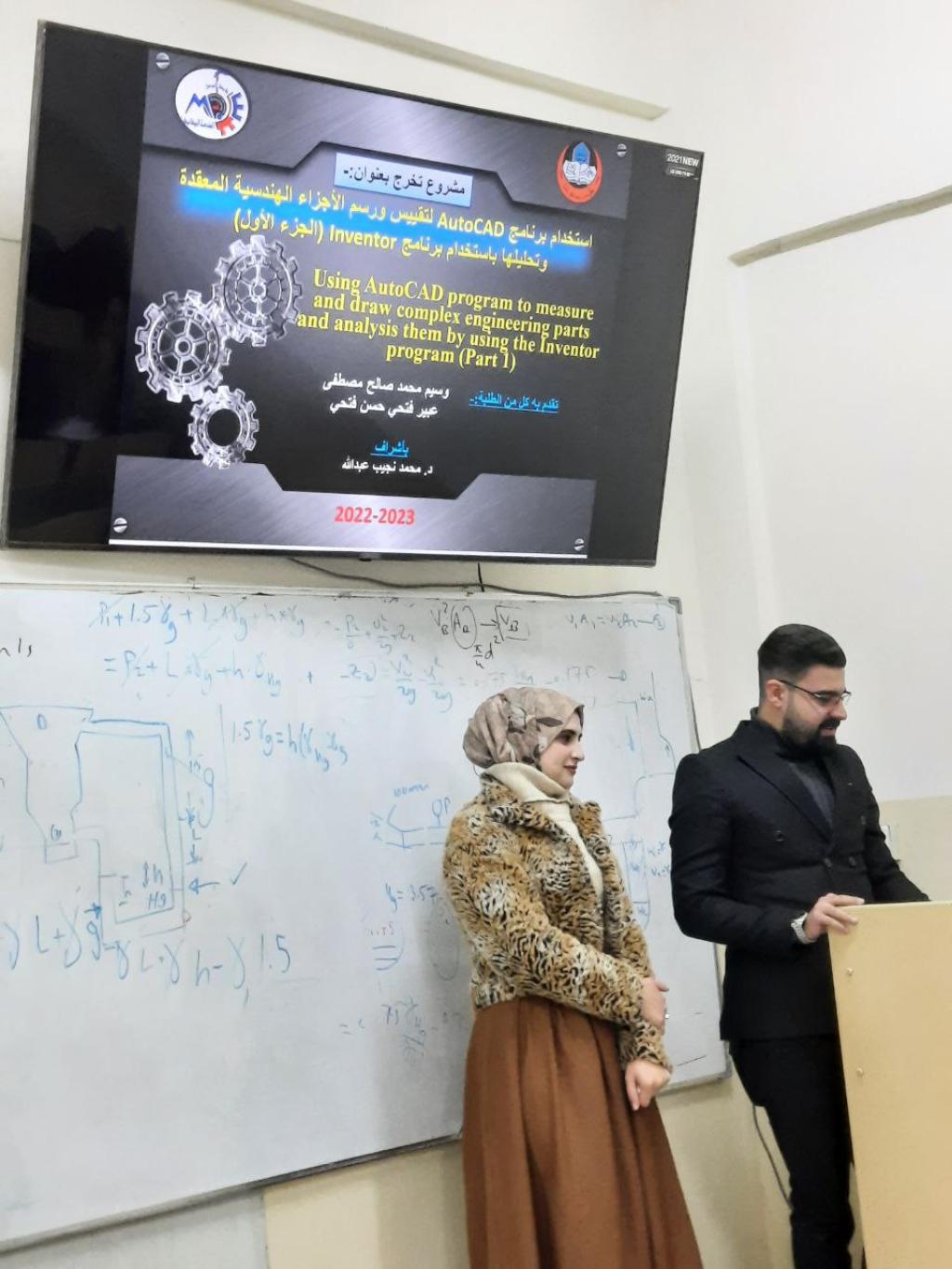 جرت اليوم الأحد الموافق 2023/1/8 الحلقة النقاشية الثانية لمشاريع طلبة المستوى الرابع في قسم الهندسة الميكانيكية وقد تم توزيع المشاريع على اللجان وحسب التخصصات العلمية (لجنة القوى الحرارية وميكانيك الموائع ولجنة الميكانيك التطبيقي وهندسة الانتاج والمعادن). حيث ابدى السادة الأعضاء ارائهم وملاحظاتهم القيمة للعمل بها لاكمال انجاز مشاريع تخرج طلبة المستوى الرابع كونها جزء من متطلبات نيل شهادة البكالوريوس في الهندسة الميكانيكية.