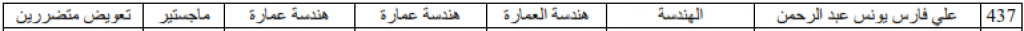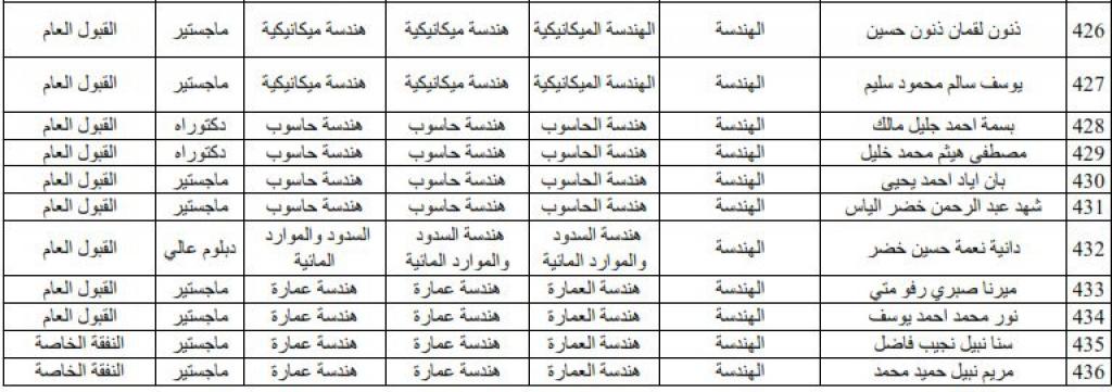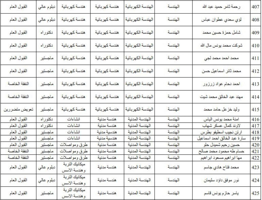أسماء الطلبة المشمولين بإشغال المقاعد حسب كتاب وزارة التعليم العالي والبحث العلمي الاخير ..يرجى الاطلاع على الاسماء علما بان استلام الاعتراضات سيكون من يوم غد صباحاً والى نهاية الدوام الرسمي لنفس اليوم…مع التقدير