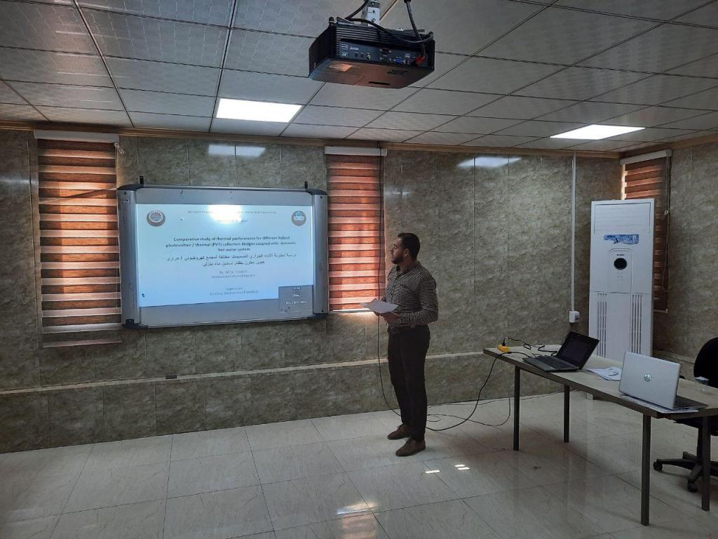 اقيمت في قسم الهندسة الميكانيكية وعلى قاعة الدراسات العليا بتاريخ 17/11 مناقشة أولية للبحوث المقدمة من قبل طلبة الماجستير في القسم وحضر المناقشة لجنة الدراسات العليا في القسم والأساتذة ذوي الاختصاص وتم الاستماع إلى ملاحظاتهم القيمة والعمل بها لغرض الارتقاء بالبحوث المقدمة لما فيه دعم المسار العلمي للقسم.