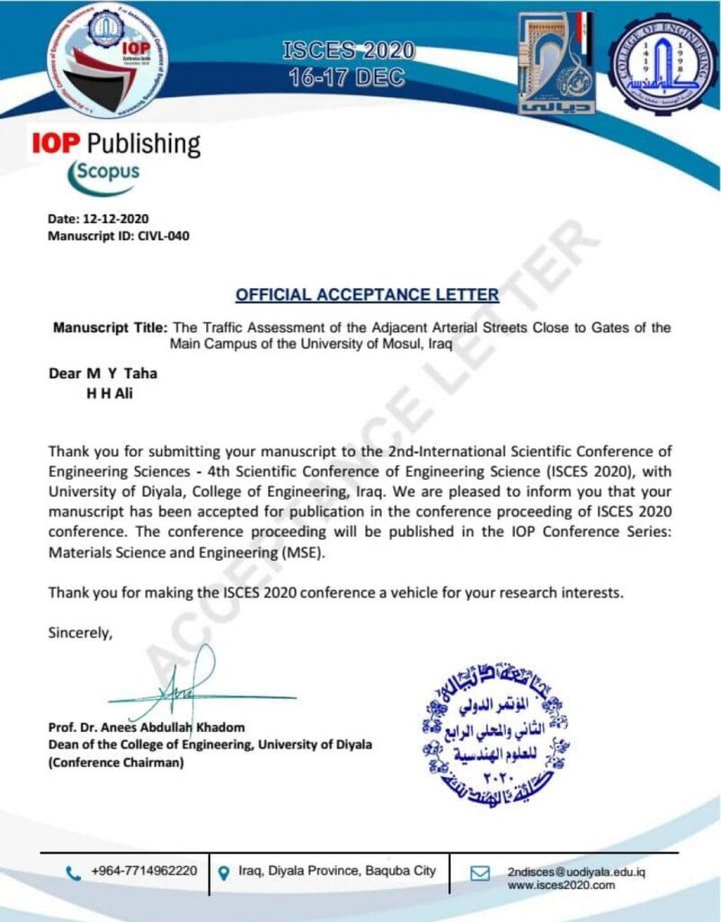 ناقش بحث الدبلوم العالي في قسم الهندسة المدنية/كلية الهندسة/جامعة الموصل ” تحليل وتصميم مبنى ملعب خرساني اولمبي ” للطالب (ديلون داؤد شمعون) بإختصاص هندسة الإنشاءات في تمام الساعة التاسعة صباحا من يوم الثلاثاء (22/12/2020) وعلى قاعة المناقشة في القسم .