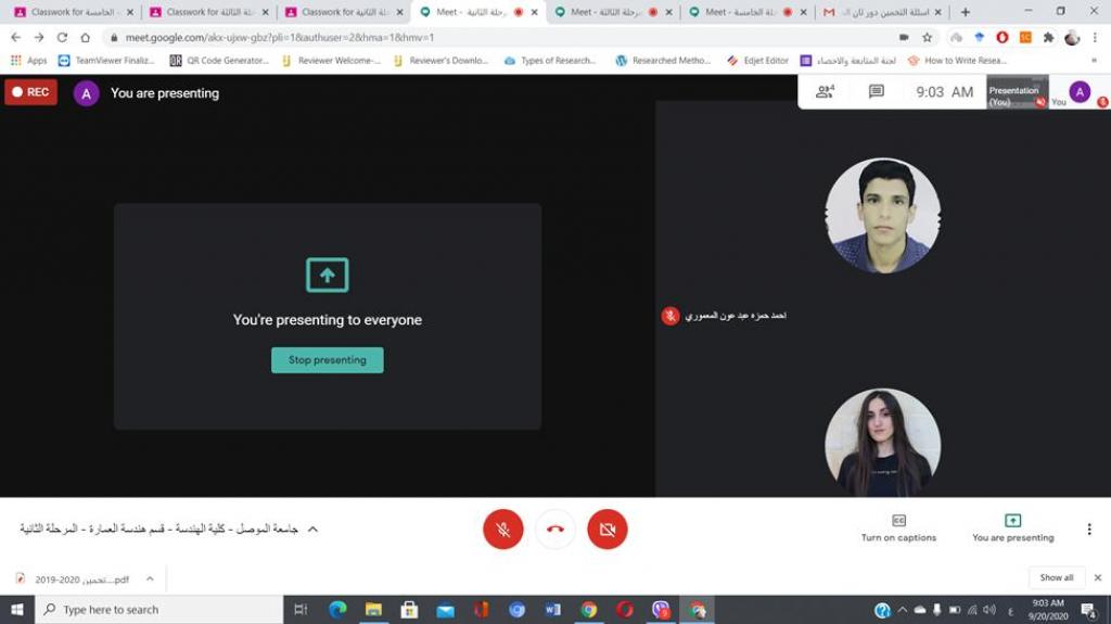 باشرت اقسام كلية الهندسة باجراء الامتحانات النهائية لطلبة الدراسات الاولية للعام الدراسي 2019-2020 (الدور الثاني) وذلك يوم الأحد الموافق 20/9/2020.تم اجراء الامتحانات بشكل الكتروني باستخدام البرنامج التفاعلي Google Meet إضافة الى برنامج Google Classroom وفق توصيات وزارة التعليم العالي والبحث العلمي.تمت الامتحانات وفق تنظيم وتنسيق عالي المستوى وبجهود متظافرة من قبل اللجان الامتحانية لتوفير امثل الظروف لطلبتنا الأعزاء. كل التوفيق لطلبتنا الأعزاء في مسيرتهم العلمية.