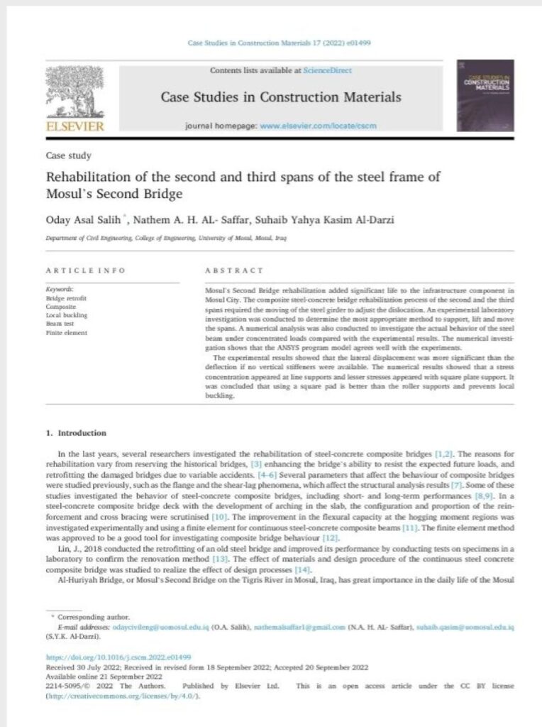 برعاية السيد رئيس جامعة الموصل الاستاذ الدكتور قصي كمال الدين الاحمدي المحترم، وبتوجيه السيد عميد كلية الهندسة الاستاذ الدكتور عبد الرحيم ابراهيم جاسم الحديدي المحترم، تم التنسيق مع بلدية الموصل لتخطيط الشوارع القريبة من عمادة كلية الهندسة والطريق الرابط بين قسم الهندسة المدنية وعمادة كلية الهندسة. كمرحلة أولى لاتمام عمليات تخطيط وتاثيث جميع طرق الحرم الجامعي. تمت عملية التخطيط ضمن المواصفات القياسية لتخطيط الطرق باستخدام اليات مديرية بلدية الموصل وضمن المواصفات الهندسية.وتابع رئيس قسم الهندسة المدنية العمل واشرف عليه وبتواجد المهندس انس سمير الى حين الانتهاء من التخطيط. نوجه شكرنا وتقديرنا لبلدية الموصل لمساهمتهما القيمة في رفد الجامعة بالامكانيات والاليات والجهد الهندسي لتبدو جامعة الموصل العريقة ابهى واحلى وتقديم كل ما يخدم منتسبي جامعتنا وطلبتنا الاعزاء والباحثين.