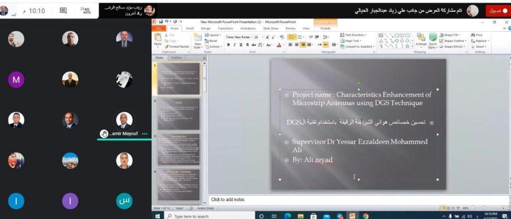 جرى في قسم الهندسة الكهربائية في كلية الهندسة في يوم الإثنين الموافق ١٣ نيسان ٢٠٢١ مناقشة مقترحات مشاريع طلبة الدبلوم العالي في اختصاصي القدرة والمكائن والالكترونيك والاتصالات الكترونيا عبر منصة الميت بمشاركة تدريسيي القسم لطلبتهم في تقديم الاراء و توجيهم وطرح الافكار ..