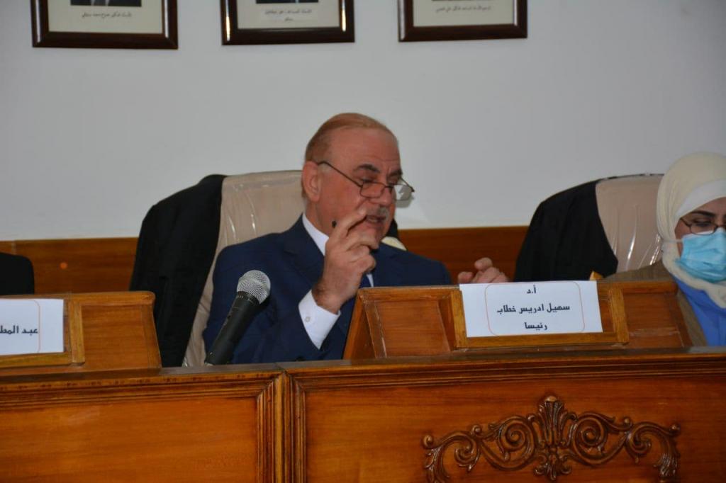 ضمن إطار التعاون العلمي لكلية الهندسة /جامعة الموصل والجامعات العراقية الاخرى ، شارك عضو الهيئة التدريسية لقسم الهندسة المدنية (الاستاذ الدكتور سهيل إدريس خطاب) يوم الثلاثاء الموافق (2021/1/19) كرئيساً للجنة المناقشة لإطروحة الدكتوراه بإختصاص الجيوتكنيك في قسم الهندسة المدنية/كلية الهندسة/جامعة بغداد للطالب (سالم محمود احمد) والموسومة ب (تأثير المعالجة بالمياه الممغنطة على تصرف الركائز اللولبية في التربة الإنتفاخية).