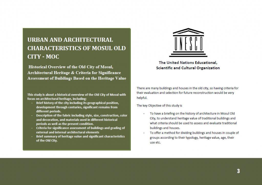 ضمن برنامج مشروع إعادة إحياء مدن الموصل والبصرة القديمة “Reviving Mosul and Basra Old cities Project ” والذي تشرف عليه المنظمة العالمية للتربية والعلوم والثقافة UNESCO ، قدم الأستاذ المساعد الدكتور عماد هاني العلاف التدريسي في قسم هندسة العمارة – كلية الهندسة – جامعة الموصل دراسة مختصة بعنوان :