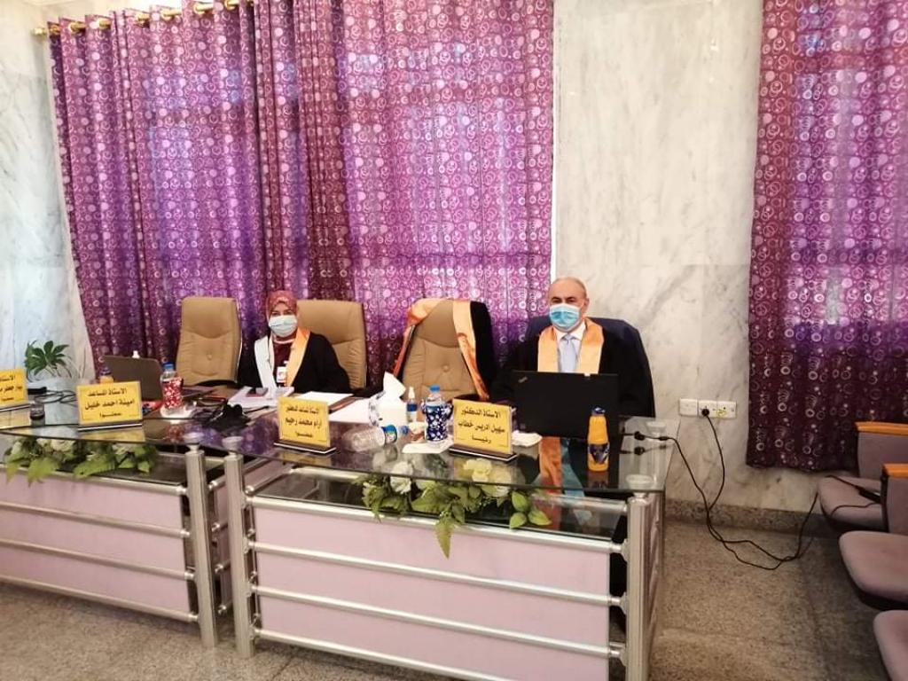 وبعدها قرأ قرار لجنة المناقشة والمتضمن قبول الرسالة مع منح الطالب درجة الماجستير.