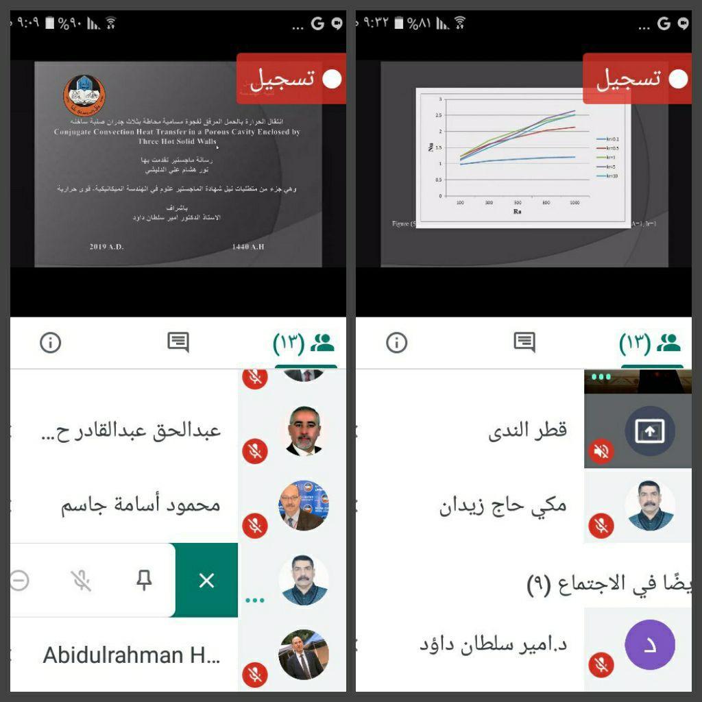 جامعة الموصل: مناقشة رسالة ماجستير والموسومة بـ (انتقال الحرارة بالحمل المرفق لفجوة مسامية محاطة بثلاث جدران صلبة ساخنة)