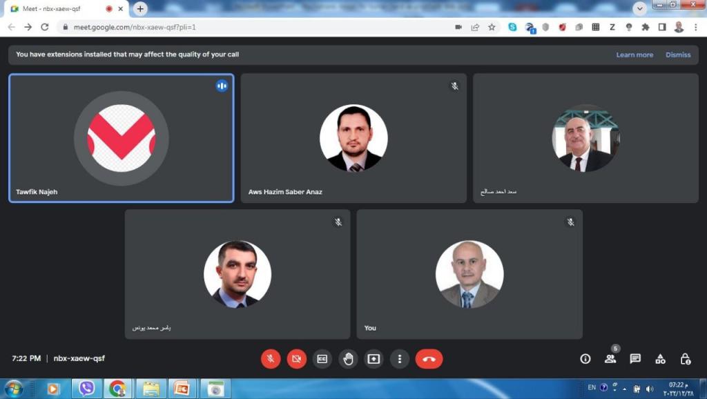 حسب توجيهات السيد رئيس جامعة الموصل الاستاذ الدكتور قصي كمال الدين الاحمدي المحترم بفتح افاق التعاون في مجال الابحاث العلمية مع الجامعات العالمية ومن اجل تكامل المعرفة واستمرار رفد جامعتنا باخر ماتوصله العلم في مجال مناهج التدريس والابحاث، وباشراف السيد عميد كلية الهندسة الأستاذ الدكتور عبد الرحيم ابراهيم جاسم المحترم، تم عقد الجلسة النقاشية الالكترونية الاولى يوم الأربعاء الموافق 2022/12/228، وعبر منصة Google Meet، بين تدريسيين في قسم هندسة الميكاترونكس والهندسة الكهربائية من جامعة الموصل والأستاذ المشارك توفيق ناجح (استاذ مشارك) من جامعة Luleå University of Technology – السويد. حيث استعرض الجانبين المسارات البحثية وامكانية اجراء بحوث مشتركة وتبادل الخبرات. واتفق الجانبان على عرض النقاط التي تم طرحها خلال اللقاء على اللجان العلمية للأقسام للبدء بالتعاون واستثمار الخبرات سعياً لتطوير الجانب البحثي والعلمي لكلية الهندسة.https://www.ltu.se/staff/t/taonaj-1.179174?l=en