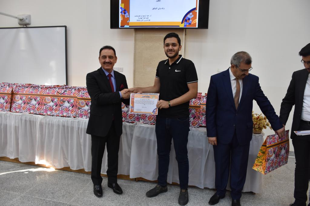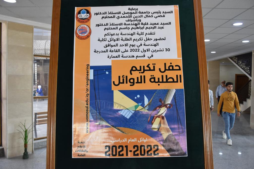 بهدف حث طلبتها على تقديم كل ما لديهم من جهود في العملية التعليمية، أقامت عمادة كلية الهندسة بجامعة الموصل اليوم الاحد الموافق 2022/10/30 حفلاً تم فيه تكريم الطلبة الأوائل على الاقسام العلمية للعام الدراسي 2021/2022.