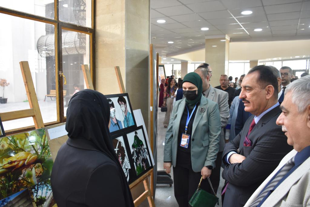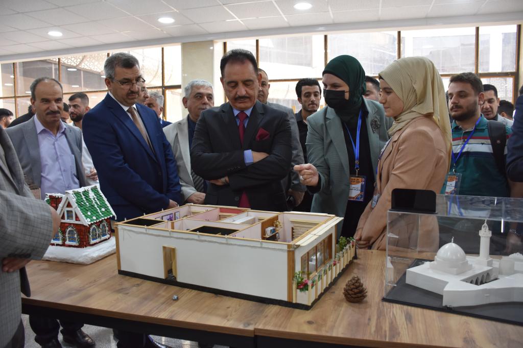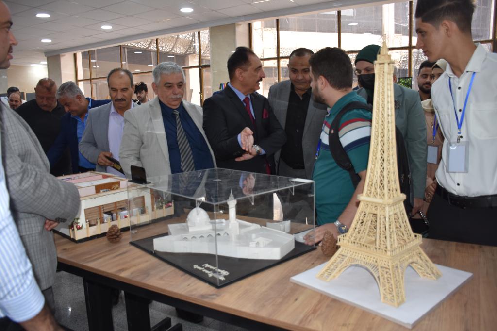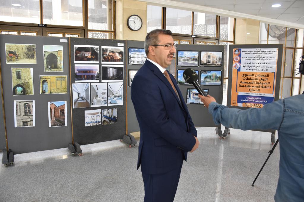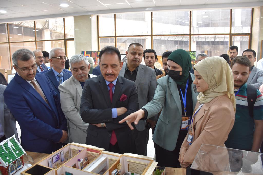 وعلى هامش حفل تكريم الطلبة الاوائل افتتح السيد رئيس الجامعة المحترم والسيد عميد الكلية المحترم المعرض السنوي لقسم هندسة العمارة للنشاطات الصيفية اللاصفية لطلبة قسم هندسة العمارة والذي اشرف على ادارته م.د. ريم علي طالب العثمان التدريسية في كلية الهندسة.