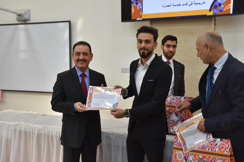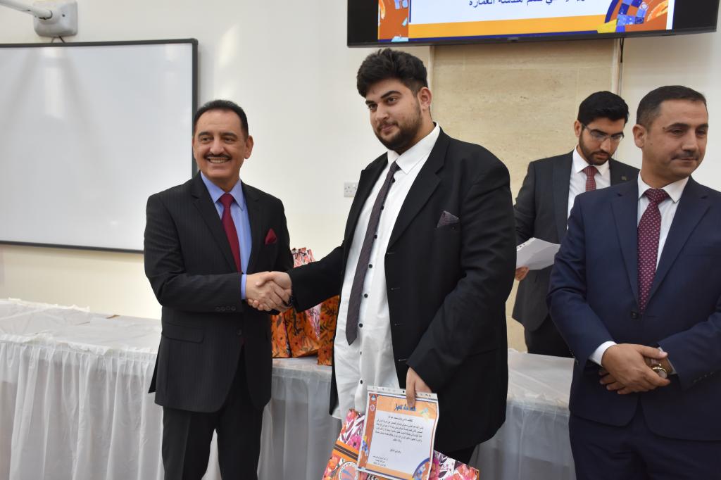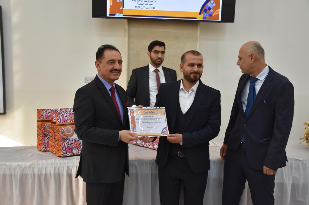 وقد حضر الحفل الأستاذ الدكتور قصي كمال الدين الاحمدي رئيس جامعة الموصل المحترم والاستاذ الدكتور منير سالم البدراني مساعد رئيس الجامعة للشؤون العلمية المحترم والاستاذ الدكتور عبد الرحيم ابراهيم جاسم عميد كلية الهندسة والمعاون الاداري والمعاون العلمي لكلية الهندسة ورؤساء الاقسام العلمية وقسم من الكادر التدريسي المحترمون.