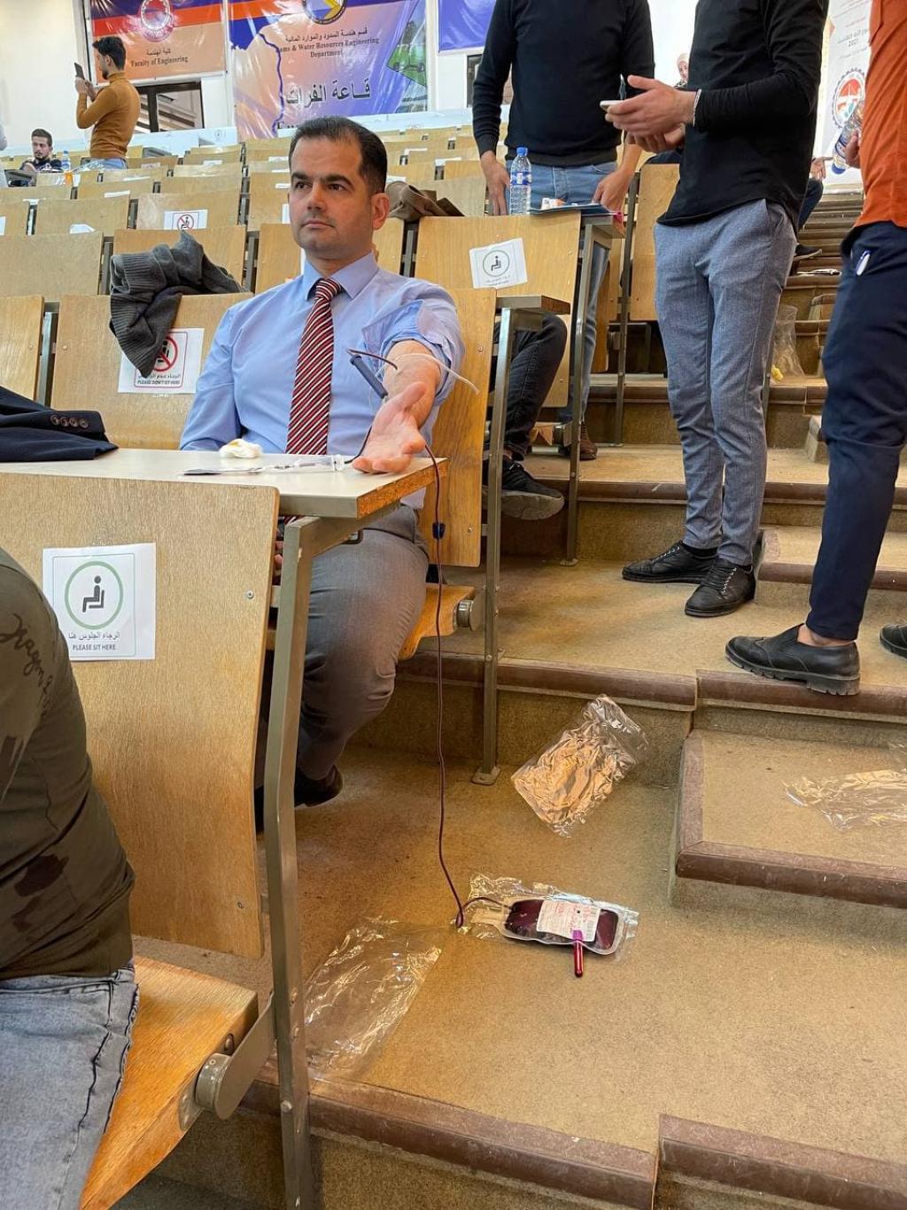 برعاية السيد رئيس جامعة الموصل الاستاذ الدكتور قصي كمال الدين الاحمدي وبإشراف السيد عميد كلية الهندسة الاستاذ الدكتور بيار جعفر السليفاني نظمت كلية الهندسة وبالتعاون مع مصرف الدم الرئيسي وعلى قاعة الفرات حملة واسعة للتبرع بالدم، والتي تأتي في إطار مساهمة كلية الهندسة لدعم مفاصل الحياة كافة، منها الجانب الإنساني بهدف إتاحتها للراقدين في المستشفيات والمحتاجين من المرضى، وقد شهدت الحملة اقبالاً واسعاً من منتسبي الكلية وطلبتها من أجل التبرع بالدم ترسيخا للأهداف الإنسانية حيث فاق عدد المتبرعين ٧٠ متبرع.