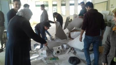 بدعم من السيد رئيس جامعة الوصل المحترم والسيد عميد كلية الهندسة المحترم قام اساتذة قسمي الهندسة المدنية وهندسة العمارة ومعهم عدد كبير من طلبة قسم هندسة العمارة ويساندهم السيد المعاون الاداري المحترم ..برفع الانقاض الناتجة عن الانفجار الذي حدث امس 28/32019 قرب باب كلية العلوم كما وقاموا باعادة اعمار ما تم تخريبة عل يد القوى الغاشمة حيث تم اعادة تاهيل القسمين العلميين وعاد كما كان سابقا وسوف يتن استقبال الطلبة يوم غد بصورة طبيعية حيث ان الدوام الرسمي سيستأنف بصورة طبيعية ..ونحن اذ ندين هذا العدوان الآثم ومحاولات التخريب المتعمد نثمن جهود الجميع وحرصهم على جامعتهم ووطنهم ..