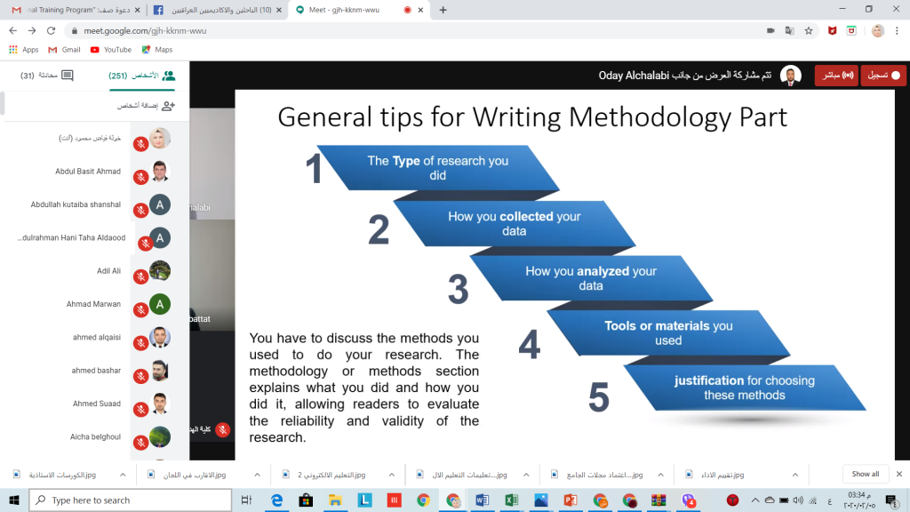 اقامت كلية الهندسة دورة تدريبية الكترونية دولية مشتركة بين جامعة الموصل وجامعة MSU الماليزية بعنوان (هل يمكنني اختيار منهجية لعمل البحث )