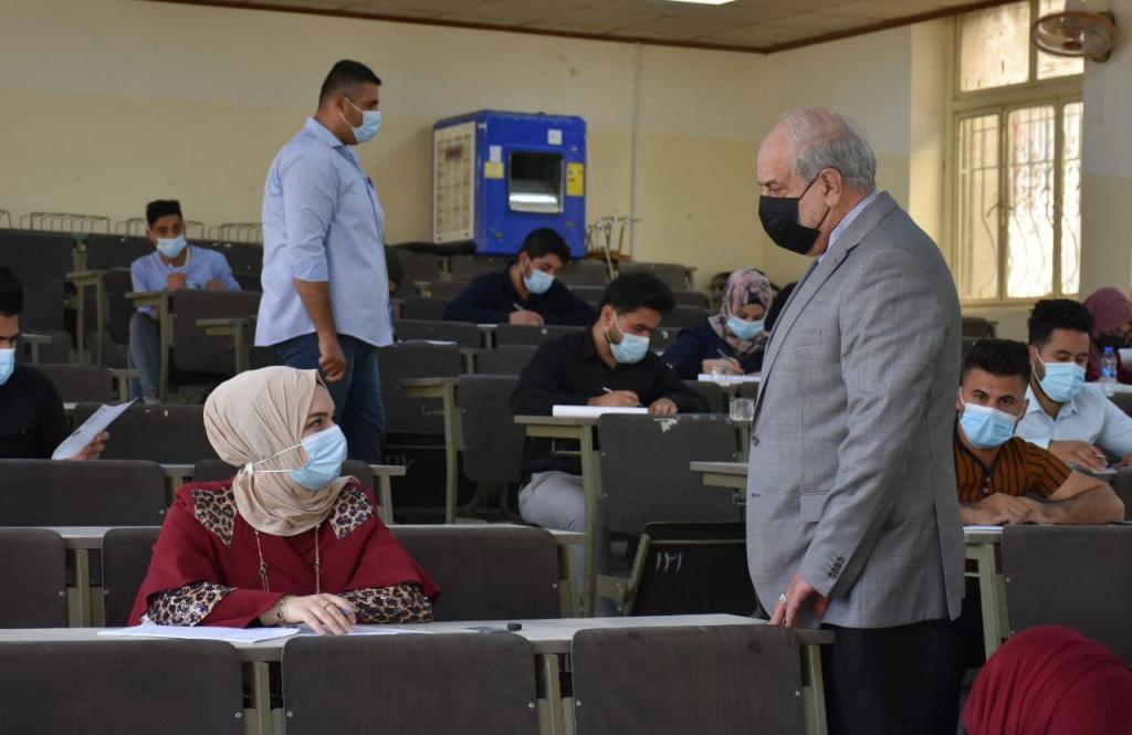 رئيس جامعة الموصل يتفقد الطلبة في امتحاناتهم الحضورية