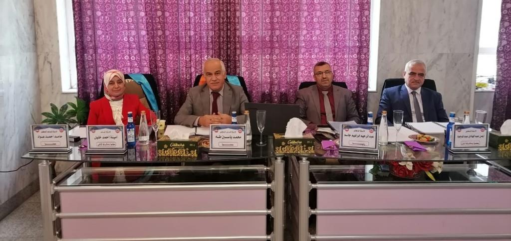 تألفت لجنة المناقشة من أ. د. عبدالرحيم ابراهيم جاسم رئيسا و أ.م. د. محمد ياسين طه عضوا و أ. م. د. حامد احمد عواد عضوا و أ. د. ايمن عبد الهادي عبد الموجود عضوا ومشرفا اول والانسة أ. م. امينة احمد خليل عضوا ومشرفا ثاني، انتهت جلسة المناقشة باعلان قبول الرسالة ومنح الطالبة درجة الماجستير.