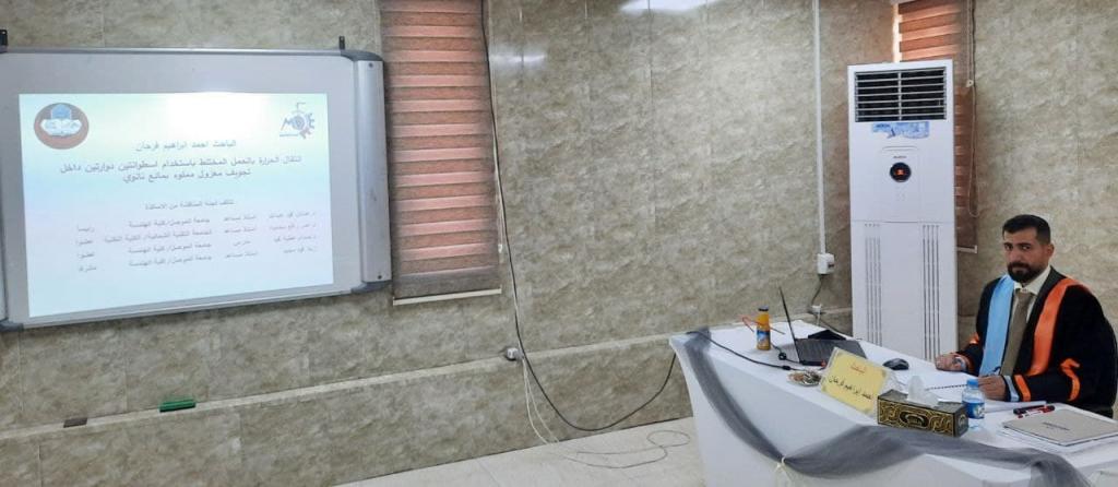 نوقشت رسالة ماجستير في قسم الهندسة الميكانيكية بجامعة الموصل بعنوان “انتقال الحرارة بالحمل المختلط باستخدام اسطوانتين دوارتين داخل تجويف معزول مملوء بمائع نانوي” للطالب احمد ابراهيم فرحان، وذلك في تمام الساعة التاسعة من يوم الأربعاء الموافق 2/2/2022 وعلى قاعة الدراسات العليا.