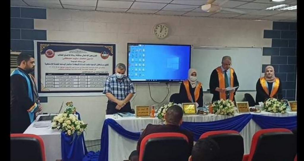 ترأس لجنة المناقشة الأستاذ المساعد الدكتور علي عثمان محمد وعضوية كل من الاستاذ المساعد الدكتورة ميادة فارس غانم والدكتورة توركان أحمد خليل، وباشراف وعضوية الاستاذ المساعد الدكتور صلاح عبد الغني جارو. قُرأ قرار لجنة المناقشة والمتضمن قبول الرسالة مع منح الطالبة درجة الماجستير.
