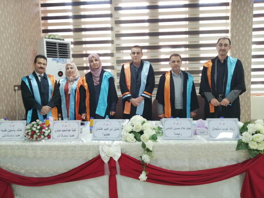 تألفت لجنة المناقشة من أ.م.د. هيثم علاء حسين الشامي كرئيس للجنة وضمت في عضويتها كل من أ.م.د. خليل ابراهيم عثمان وم.د. زياد ايوب سليمان وأ.م.د. غنية عبد المجيد حياوي عضواً ومشرفاً اول و م.د. خالد ياسين طه عضواً ومشرفاً ثان.