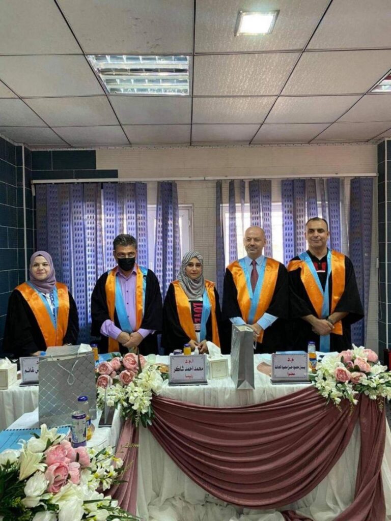 ترأس لجنة المناقشة الأستاذ الدكتور قتيبة إبراهيم علي وانضم الى عضويتها كل من الأستاذ المساعد الدكتور أحمد مامون فاضل والمدرس الدكتور صدقي بكر ذنون وباشراف وعضوية الأستاذ المساعد الدكتور ربيع موفق حاجم.