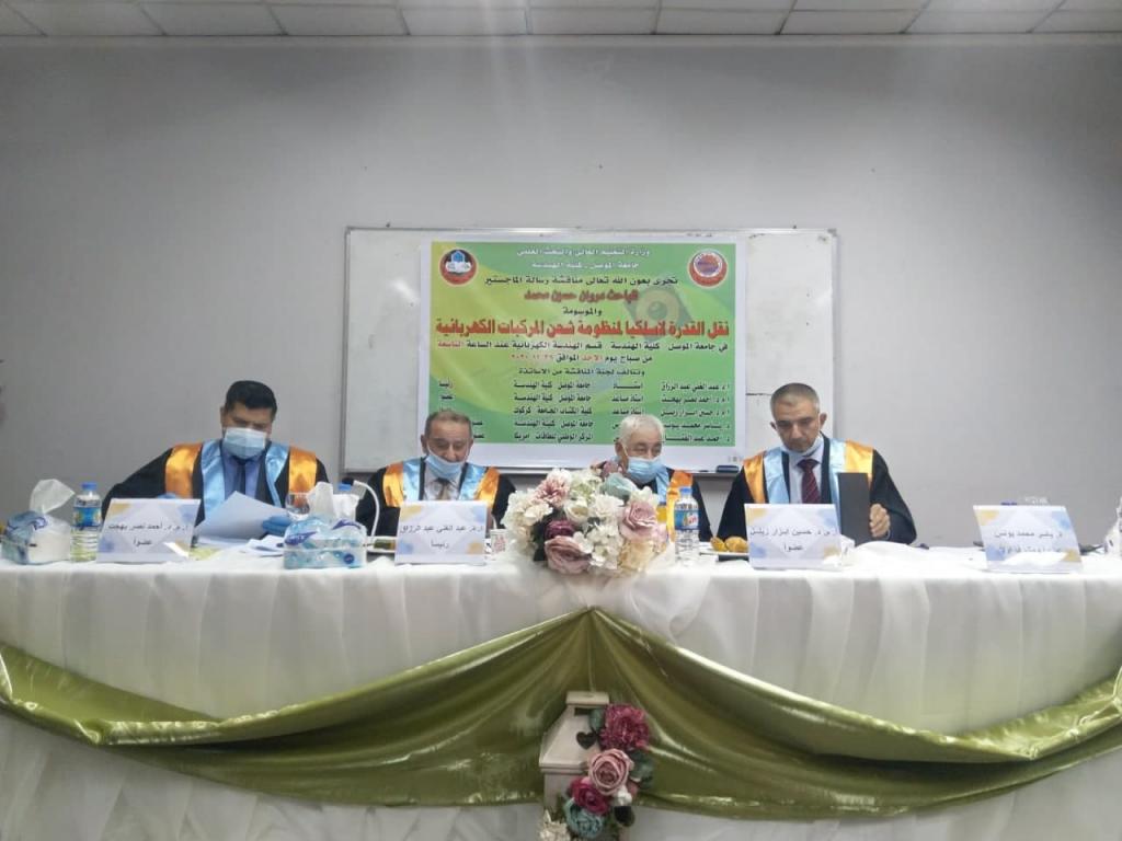ناقشت رسالة ماجستير في قسم الهندسة الكهربائية / كلية الهندسة بجامعة الموصل ” نقل القدرة لاسلكياً لمنظومة شحن المركبات الكهربائية ” للطالب مروان حسين محمد في تمام الساعة التاسعة من يوم الاحد الموافق 29/11/2020.