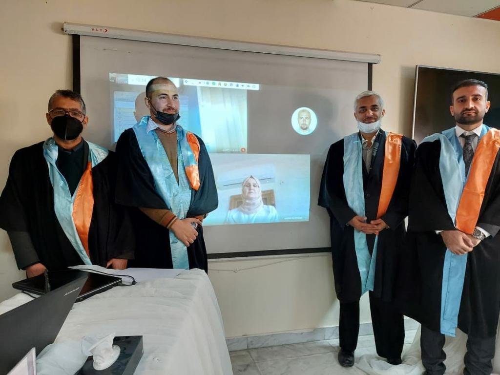 و مما تجدر الاشارة اليه هو ان لجنة المناقشة تالفت من (د. وحدة شكر الحنكاوي/ أستاذ مساعد/ الجامعة التكنلوجية) رئيسا و ( د. احمد يوسف العمري/ أستاذ مساعد/ جامعة الموصل ) عضوا و (د. عمر عادل صباح/ مدرس/جامعة الموصل) عضوا فضلا عن (د. عماد هاني العلاف/ أستاذ مساعد/ جامعة الموصل) عضوا و مشرفا.